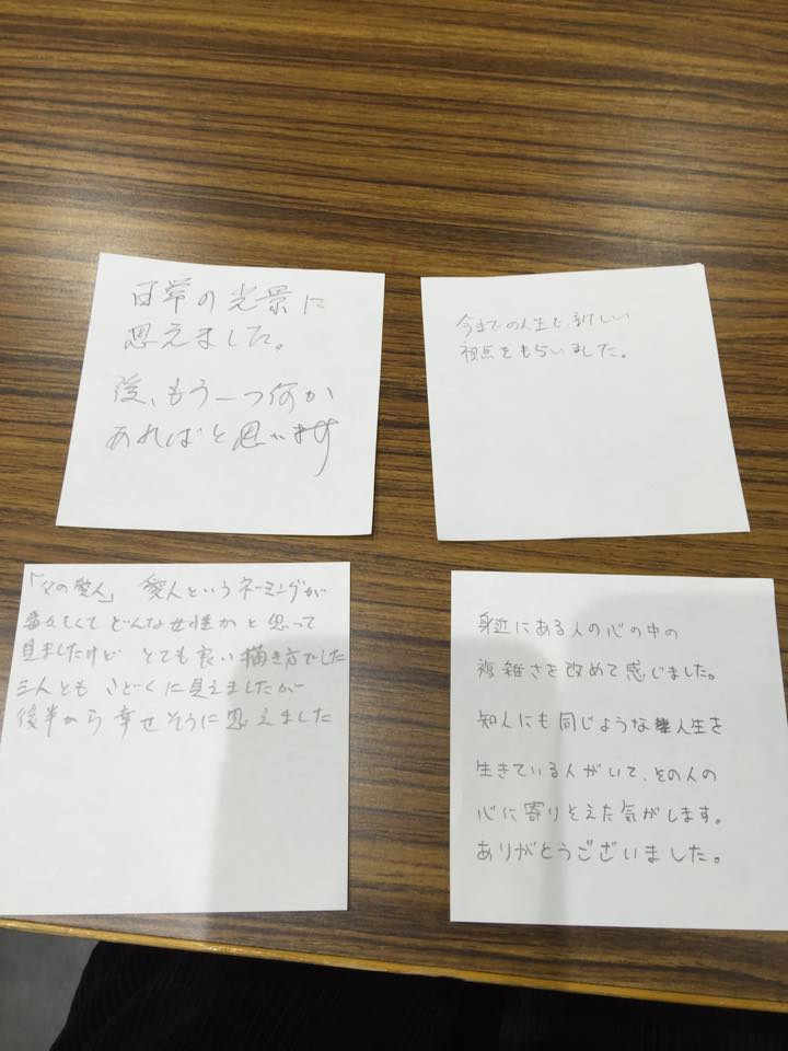 横川シネマ最終日お客様コメント 2014年12月20日 | [広島 横川シネマ], 横川シネマお客様コメント企画 [ロードショー無事終了しました!] 映画『父の愛人』横川シネマ 12月13-19日 連日18:50から 大阪第七藝術劇場公開に続いて 『お客様からのコメント企画」横川シネマでもさせていただきます! 最終日に頂いたコメントです。 出演者のお名前間違え以外は無修正です。否定的なコメントも、全て出させて頂きます。 ありがとうございます!