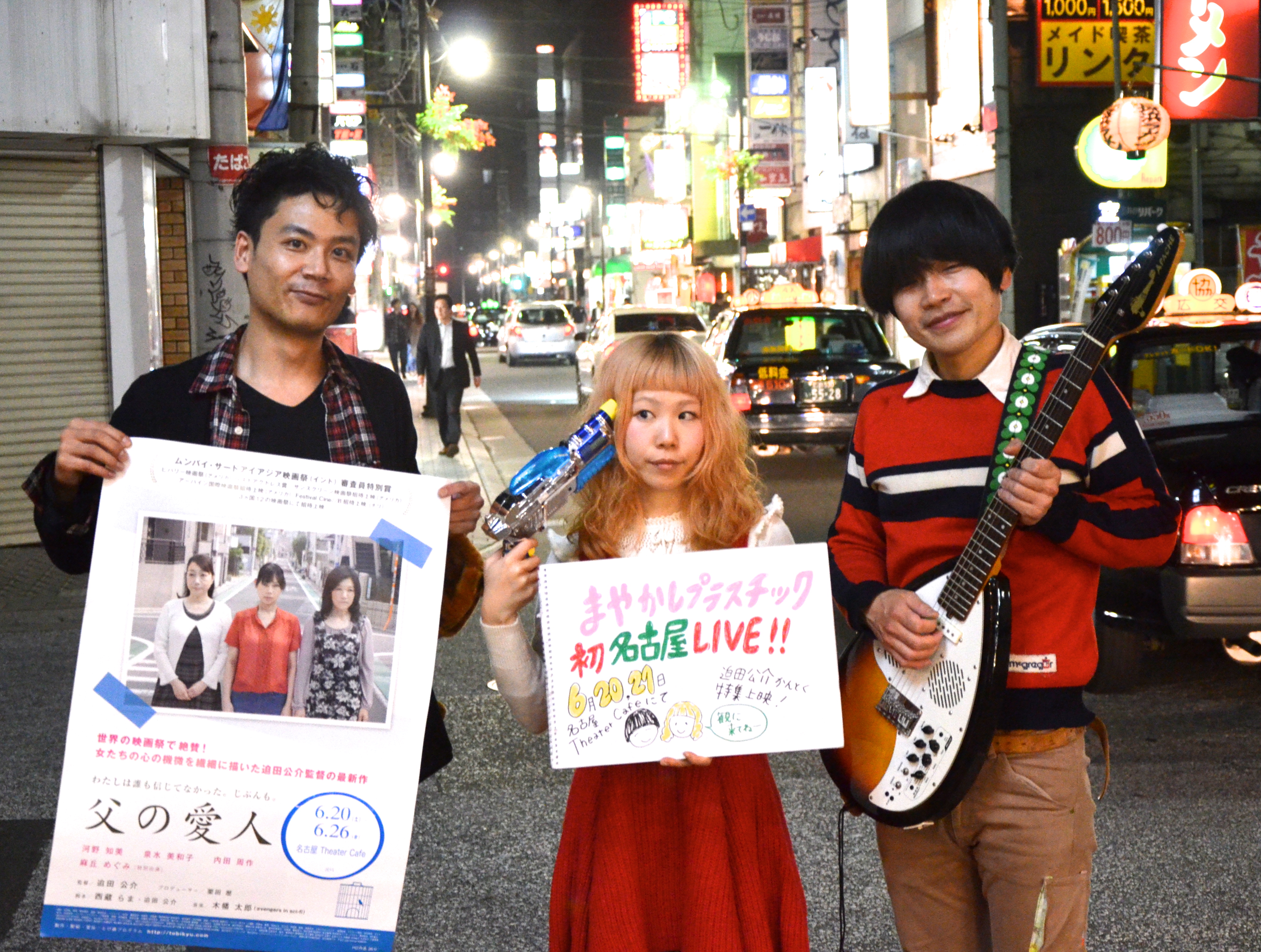 今、広島に住んでおります監督の迫田です。今回、名古屋での上映に際して、そうだ!と思って広島から面白いバンドをお連れしてライブしてもらおう!と思い立ちまして。まやかしプラスチックさんにお願いしたところ快諾いただきました。ちょうどニューアルバムも発売予定とのことでしたので、これはこれは、ということで。
