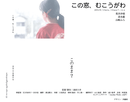 スチール テラダノブコ タイトル画 秋山直人 レイアウトデザイン 川端 咲子  特機  オノ ライト 映像サービス 現像 IMAJIKA タイミング 石田 記理 整音 真弓 真吾 ネガ編集 フィルムクラフト リーレコ  東京テレビセンター  製作  「この窓、むこうがわチーム」  ニューシネマワークショップ