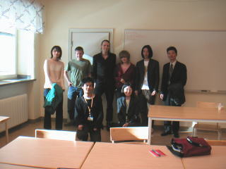 | お昼からは高校の日本語クラスに訪問! スウェーデンでは現在、日本がとても人気が有って、1、2年生では、入りきれないくらいの生徒が集まるとのこと。しかし3年生になると単位の関係でとる人が限られて来て、現在4名のみ、そして本日は3名。クリストファーとユリア、カッレ。 渡辺さんを含めた4名と机を挟んでお見合い状態となる。 クリストファーは、ビジュアル系(もちろん日本の)ファンとのことで、マリスミゼルについて色々と教えてもらう。そしてとてもナイスガイ!クリストファーの優しさに何度心癒された事だろうか。癒し系ビジュアルだ。 ユリアもビジュアル系ファンとのこと、ウメオはどうですか?と聞くと、うつむいて、アンニュイに「タイクツナマチ」と一言。やっぱり都会に行きたいんだ。 カッレは下級生とのこともあり、あまり日本語分からないけど、シャイで、すぐに顔が赤くなり。とてもキュートだった。 そして最後に何故だか、4人でスマ○プの「世界にひと○だけの花」を合唱することに。 授業が終わり、会場までクリストファーとユリアに送ってもらう事に、そして無理を言って、クリストファーの家に家庭訪問させてもらった。 もう、映画みたいな家。きれいなんだ、これが。 |