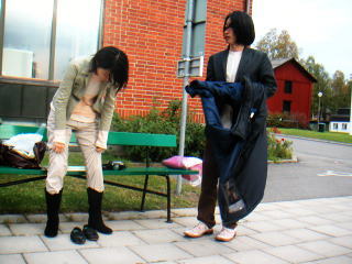 I did it in the art museum where there were the evening, a picture of a recommended Sami people, but I changed it in an open space in front of an art museum and took a photograph because I purchased the formal clothes which were over between closing time in the morning