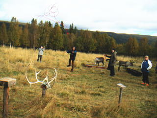 カウボーイみたいにトナカイを投げ縄で捕まえることもあるので、その練習にと、地上にトナさんの角がおいてあり、僕たちも挑戦!なかなかに難しいが迫田、成功する。